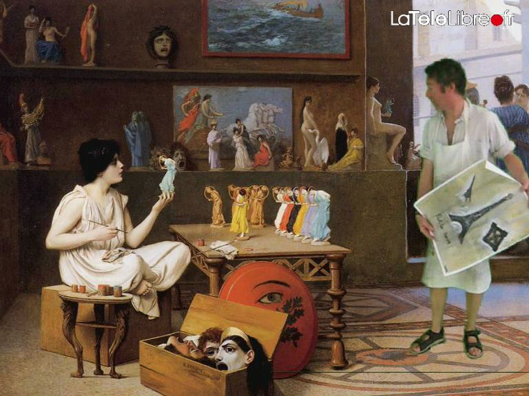 Un prof d’art graphique un brin loufoque (François Duteurtre) se met en scène dans les tableaux des grands maîtres. Il fabrique des vidéos-rébus avec un petit appareil photo, et les montre à ses élèves en classe. Il les a proposées à LaTéléLibre.
